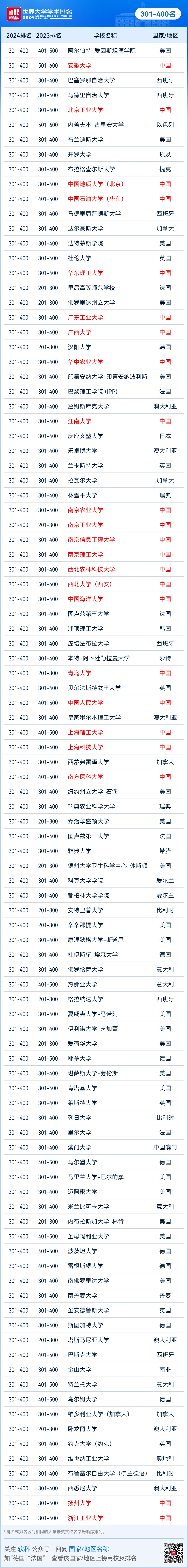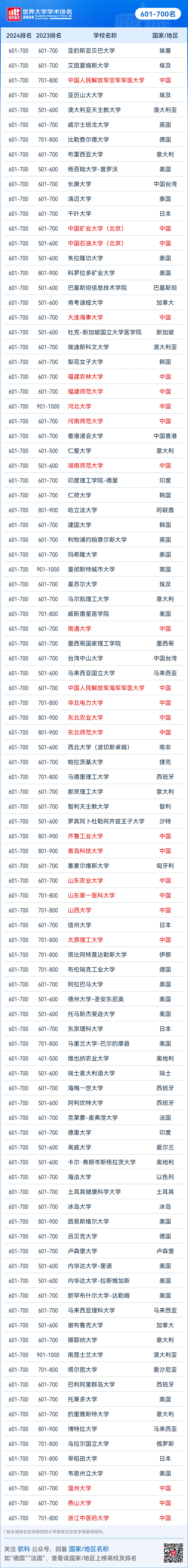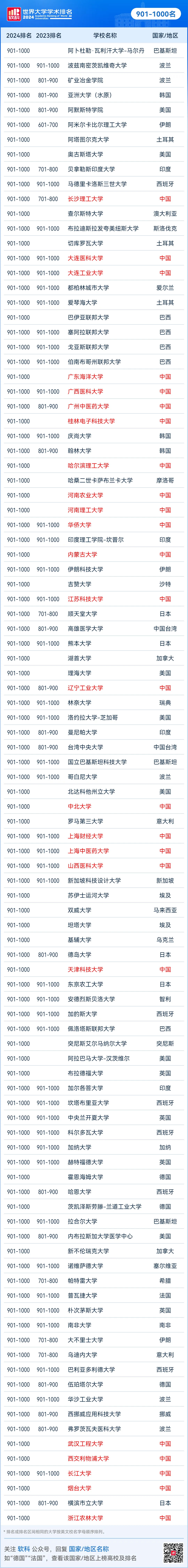 2024軟科世界大學(xué)學(xué)術(shù)排名完整名單