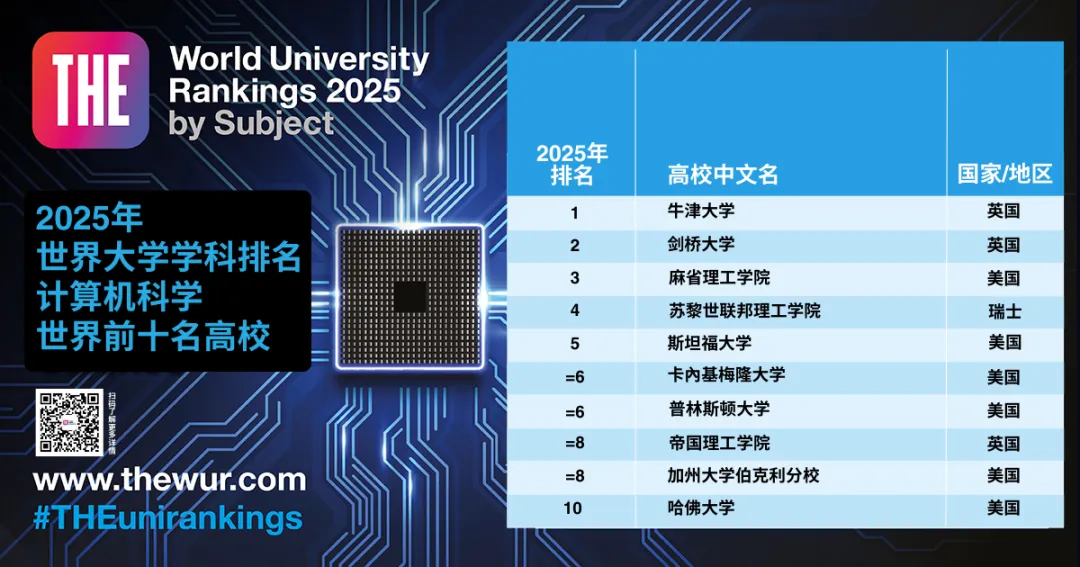 在2025年泰晤士高等教育世界大學學科排名中,美國麻省理工學院和斯坦福大學遙遙領(lǐng)先。兩所高校在三個學科排名中均名列前茅。