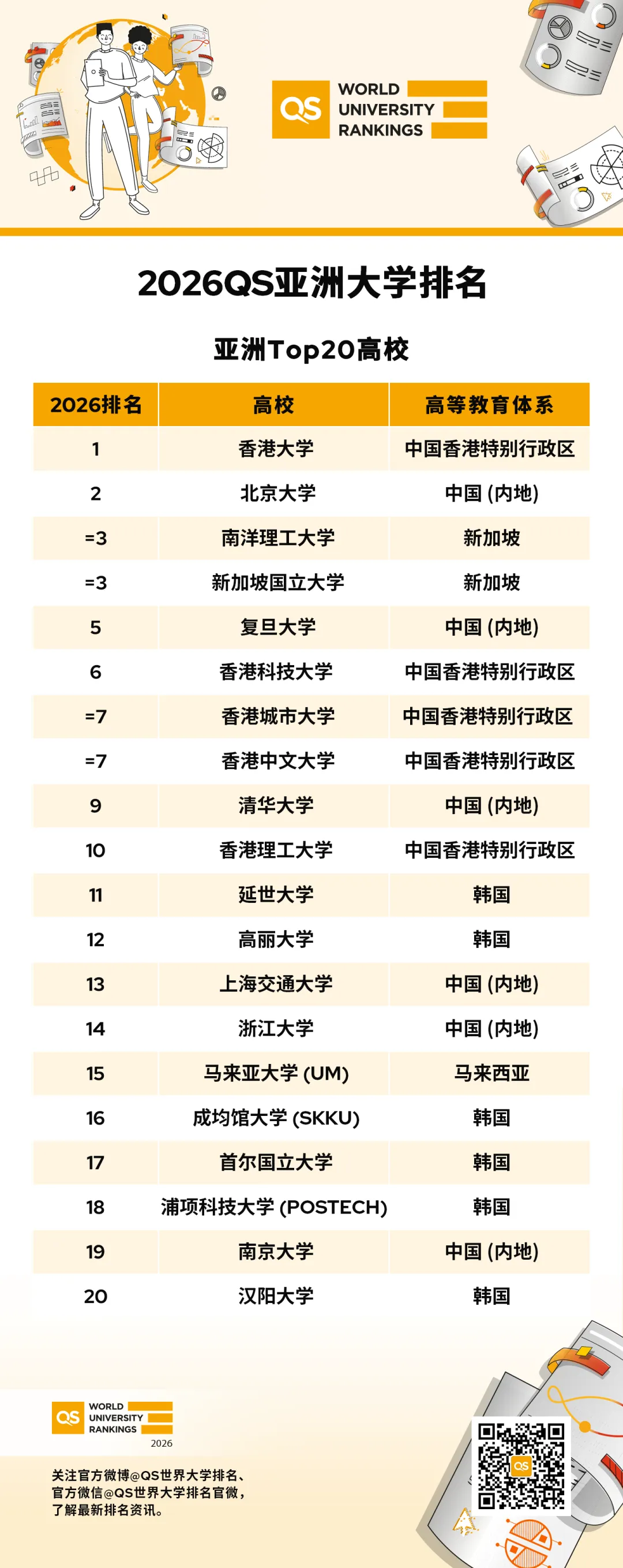 國際高等教育研究機構QS Quacquarelli Symonds于11月4日正式發(fā)布了2026QS亞洲大學排名。