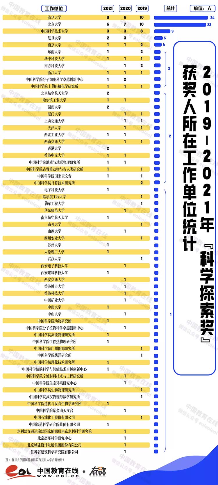 從三年的獲獎名單來看,高校共有116人獲獎,清華大學(xué)、北京大學(xué)的獲獎人數(shù)最多,分別有24位、23位科學(xué)家獲獎,其次,中國科學(xué)技術(shù)大學(xué)有9位科學(xué)家獲此殊榮。