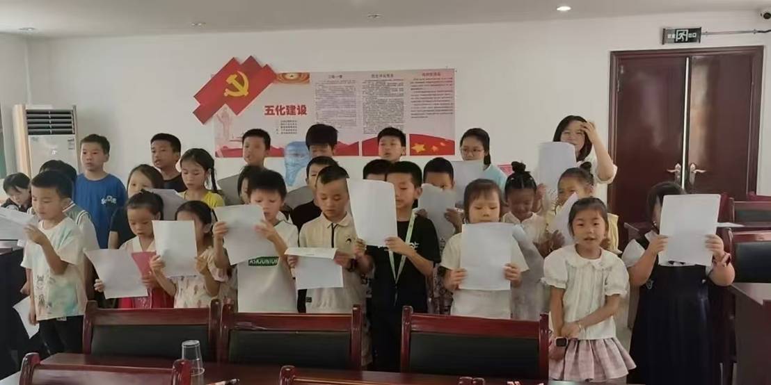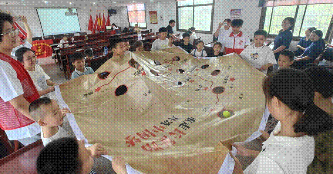 紅色教育潤童心,基因傳承有新意。團隊以“用情傳史”為理念,讓紅色精神在互動中浸潤孩子們的心靈。在“長征足跡”主題活動中,成員們創(chuàng)新形式,通過趣味互動讓歷史“活”起來:孩子們合力扯著皮布滾動小球,球到一處,便聆聽一段長征故事;課本里的紅色篇章被搬上“舞臺”,孩子們化身故事主角參與角色扮演。生動的體驗讓孩子們觸摸到歷史的溫度,紅色基因不再是遙遠的符號,而是融入血脈的傳承。每當《五星紅旗迎風(fēng)飄揚》的歌聲在課堂響起,孩子們眼中的自豪與激昂便感染著在場每一個人,這份純粹的愛國情懷,成為暑期課堂里最動人的旋律。
