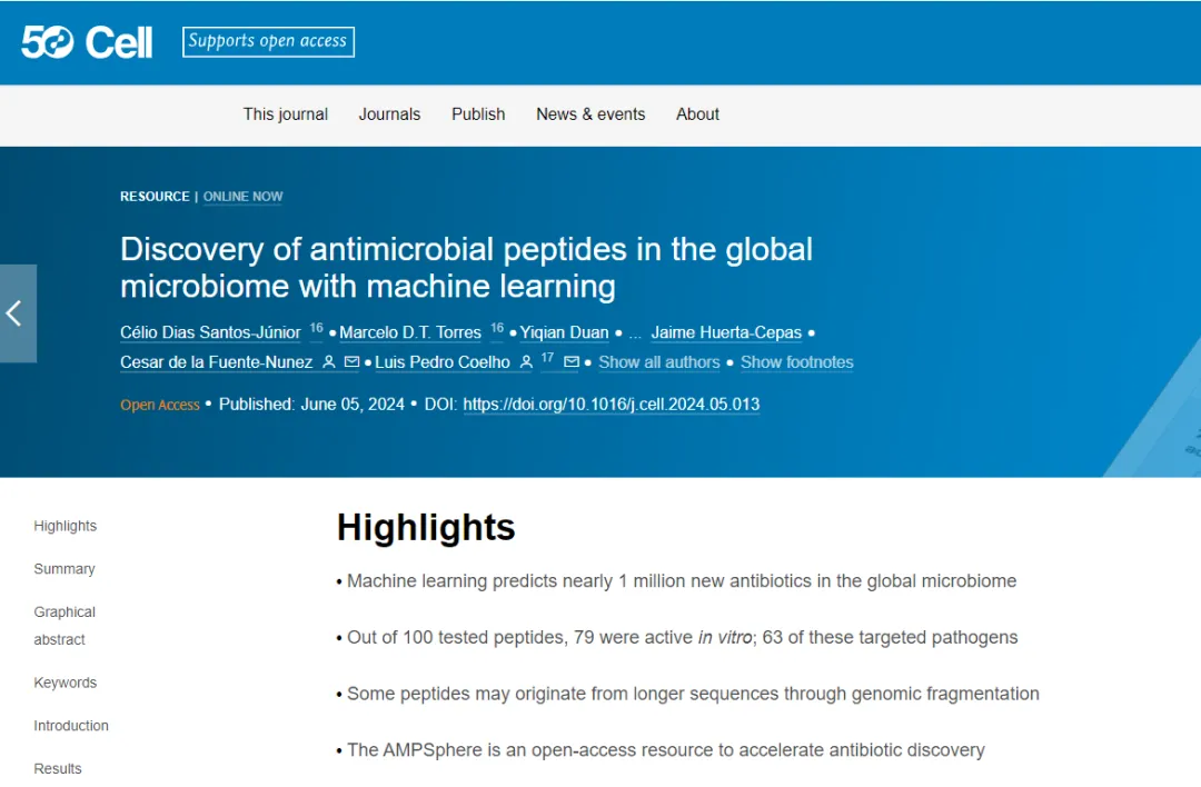 該研究證明了人工智能方法從全球微生物組中識別功能性 AMP 的潛力,研究團隊提出的該AMPSphere數(shù)據(jù)庫為微生物領域研究提供了寶貴資源,這些研究發(fā)現(xiàn)對于理解抗菌肽的起源和作用機制具有重要意義,為未來抗菌藥物的研發(fā)邁出了重要一步,為人類健康研究提供了重要貢獻。
