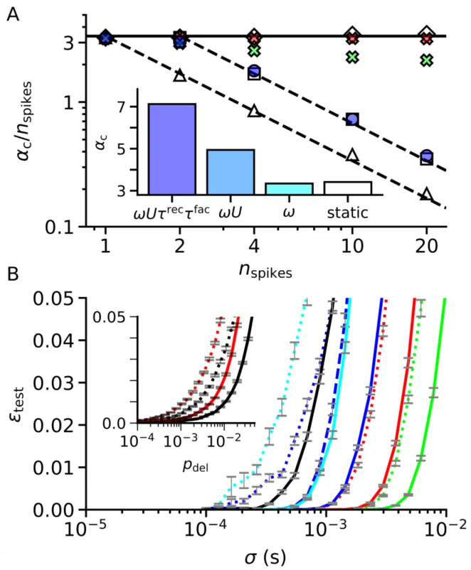 針對(duì)這一難題,研究團(tuán)隊(duì)通過構(gòu)建突觸計(jì)算與學(xué)習(xí)理論模型,發(fā)現(xiàn)當(dāng)“長(zhǎng)時(shí)可塑性”作用于“短時(shí)可塑性”時(shí),大腦能夠?qū)r(shí)間序列上的信息轉(zhuǎn)化為空間上的表達(dá)模式。這一機(jī)制顯著增強(qiáng)了神經(jīng)網(wǎng)絡(luò)的記憶容量、抗干擾能力以及對(duì)復(fù)雜時(shí)空信息的識(shí)別能力。該模型還在小鼠與人類大腦皮層突觸電生理觀測(cè)中得到了驗(yàn)證,顯示出高度的生物合理性。